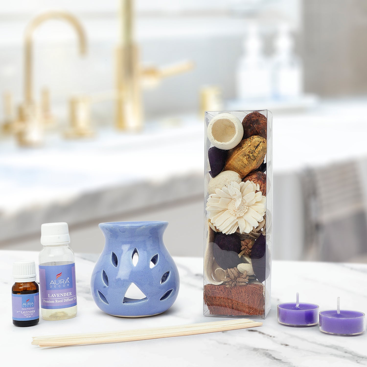 Bulk Buy (15 sets) of AuraDecor Aromatherapy giftset (aroma diffuser, reed diffuser, potpourri & tealights) (GS-18)