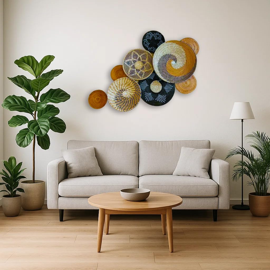 - Unique Patterns & Multi Sizes – Includes a mix of spiral, star, and geometric designs in earthy tones (black, beige, tan, white) with sizes ranging from small to large for dynamic wall displays.