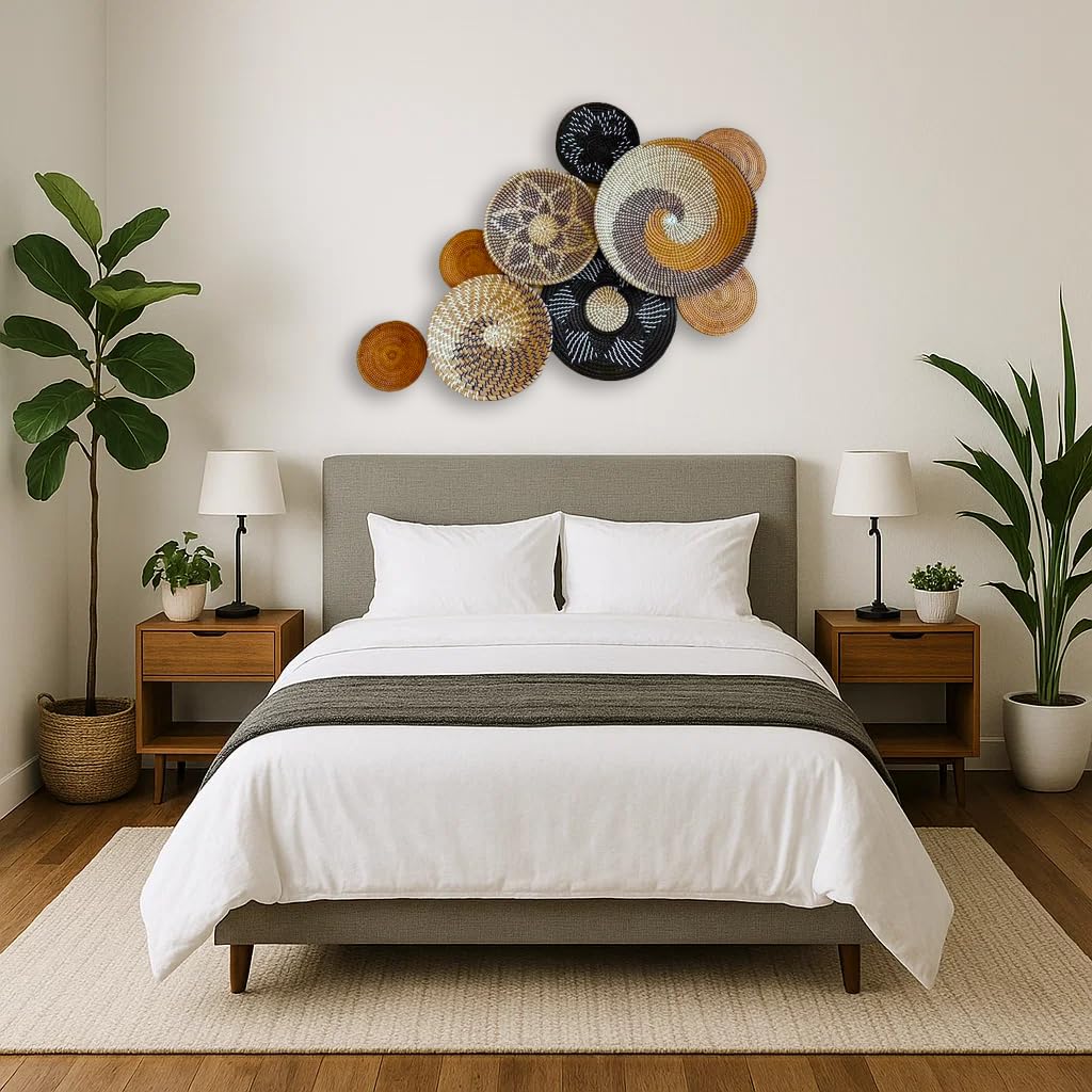 - 9-Piece Boho Wall Decor Set – Complete your wall with a curated collection of 9 woven baskets in assorted sizes and designs, perfect for creating a unique bohemian accent wall.