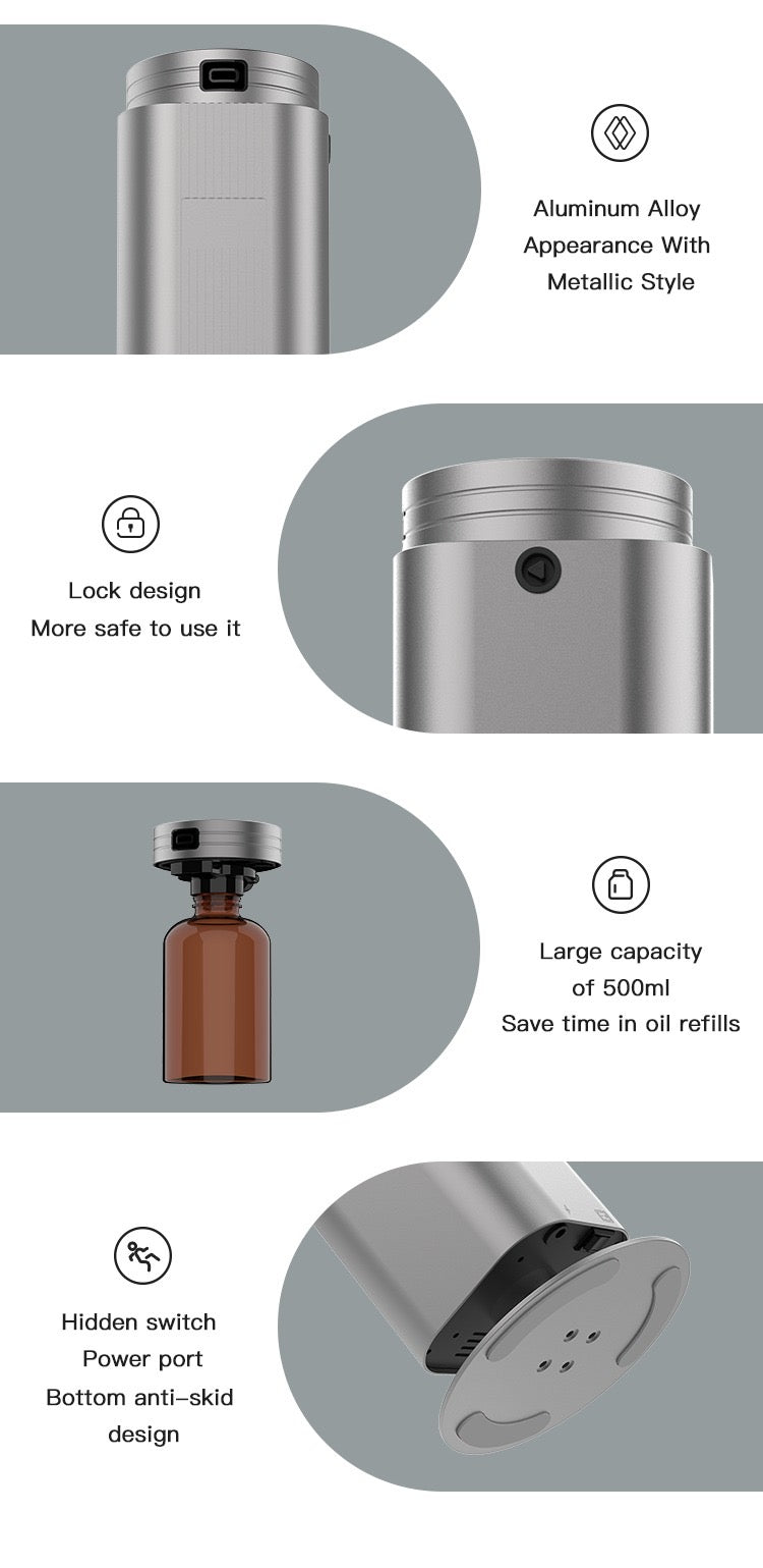 Effectively scents spaces ranging from 5000 – 8000 m³, making it suitable for large commercial interiors. Luxury Aluminum Body, Crafted with a premium metallic finish for durability, stability, and a sophisticated appearance.