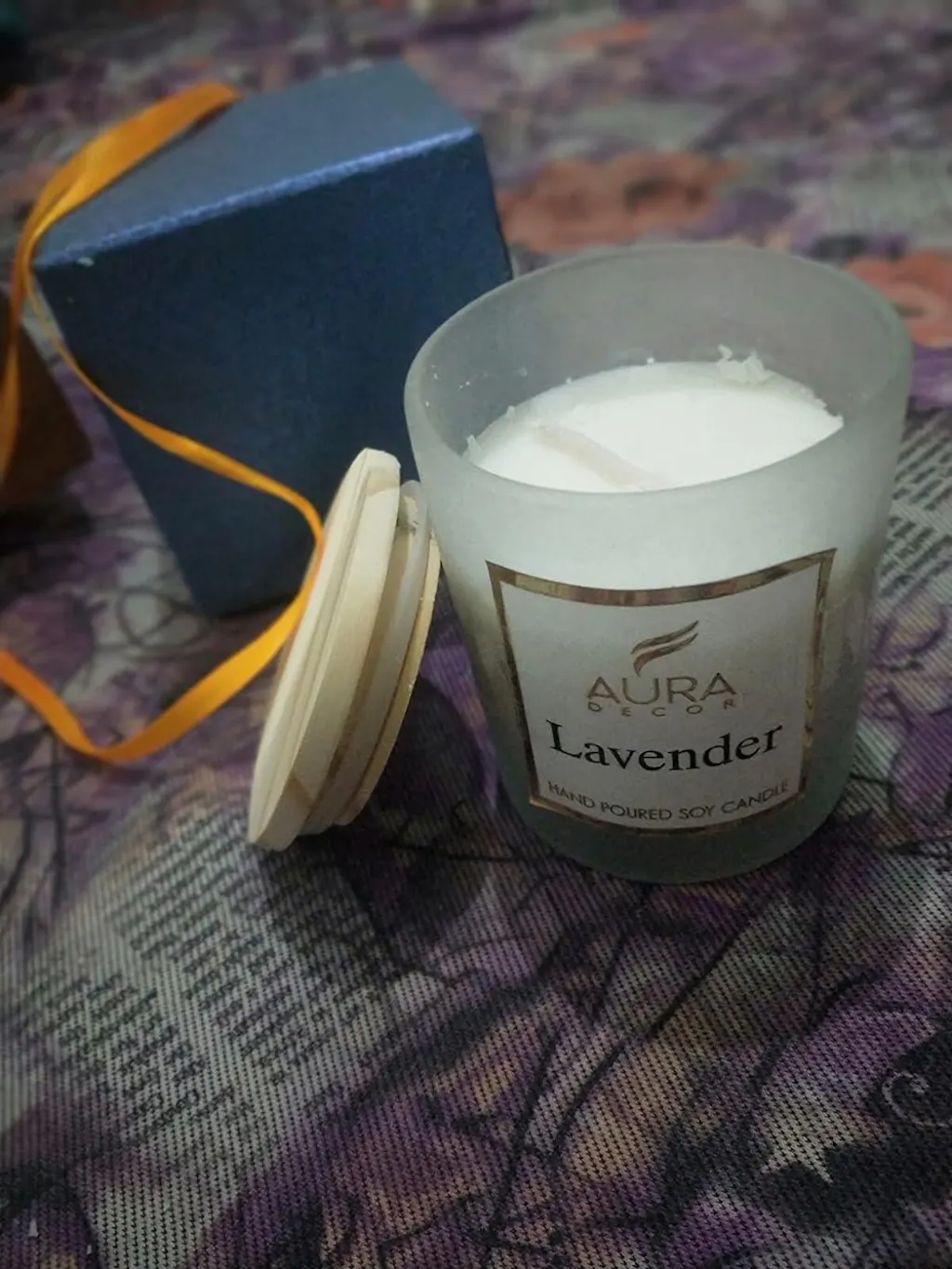 AuraDecor HandPoured Soy Wax Candle with Wooden Lid & in a Gift Box