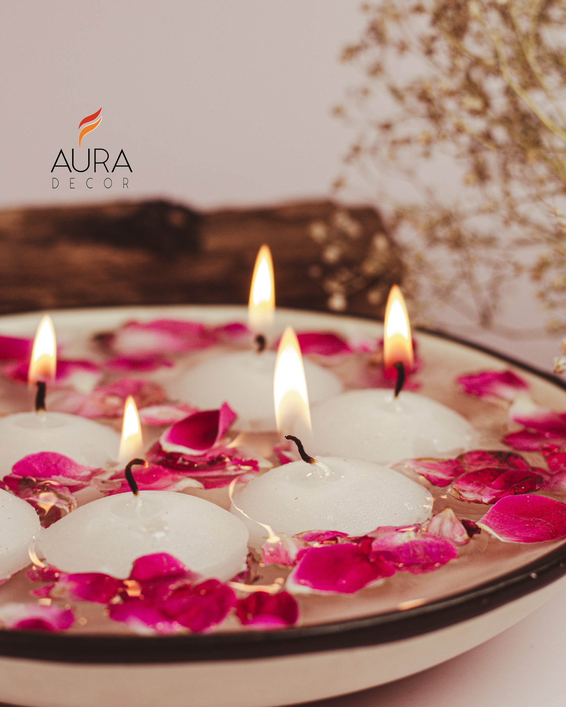 AuraDecor Bulk Buy Pack of 20 Nugget Floating Candle ( Burning Time 4 hours Each ) ( 24 Packets Master )