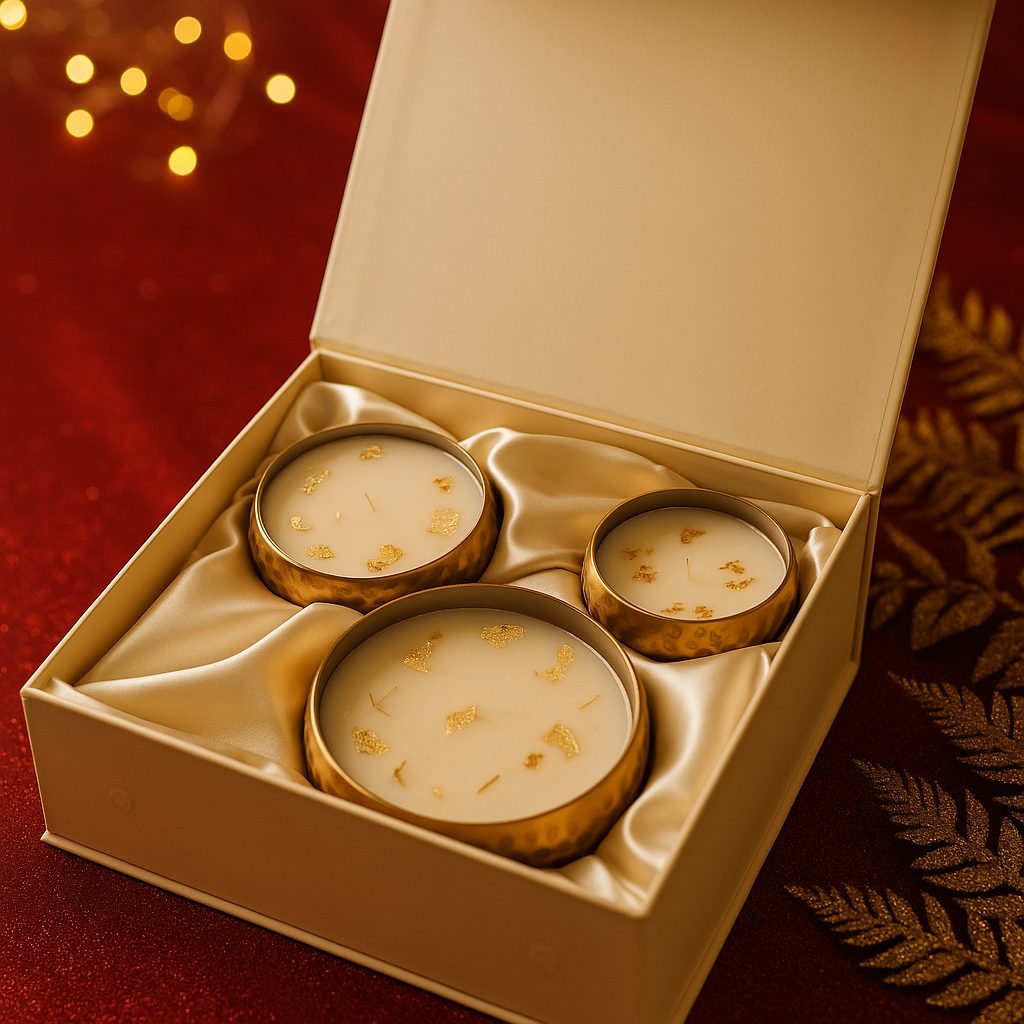Gold Hammered Urli with Pure Wax & Mutiple Wicks Option