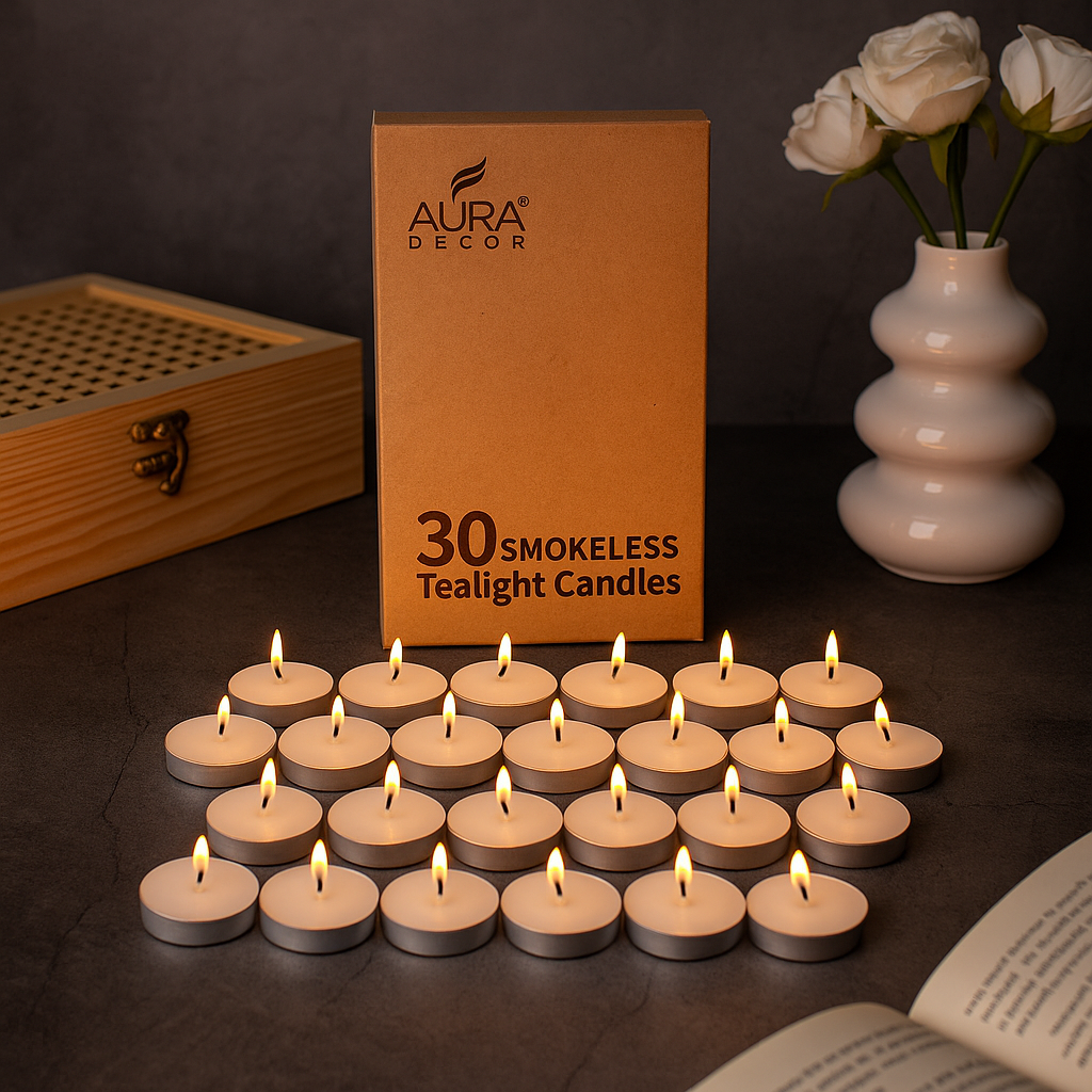Bulk Buy AuraDecor Pack of 30 Unscented Smokeless Tealight Candles (Master pack of 40 packets)