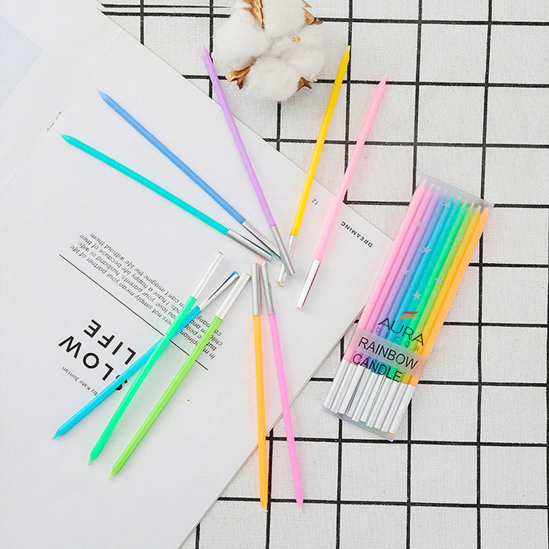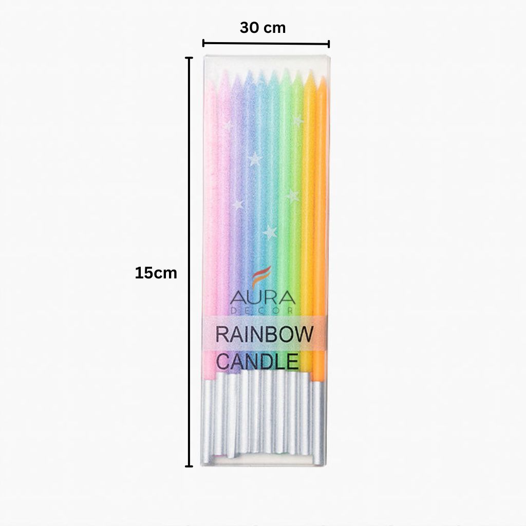 Bring extra joy to your celebrations with Auradecor Straight Multicolour Birthday Candles. This pack of 10 vibrant candles adds a fun and colorful touch to any cake. Easy to light, smokeless, and long-burning—perfect for birthdays, parties, and special moments
