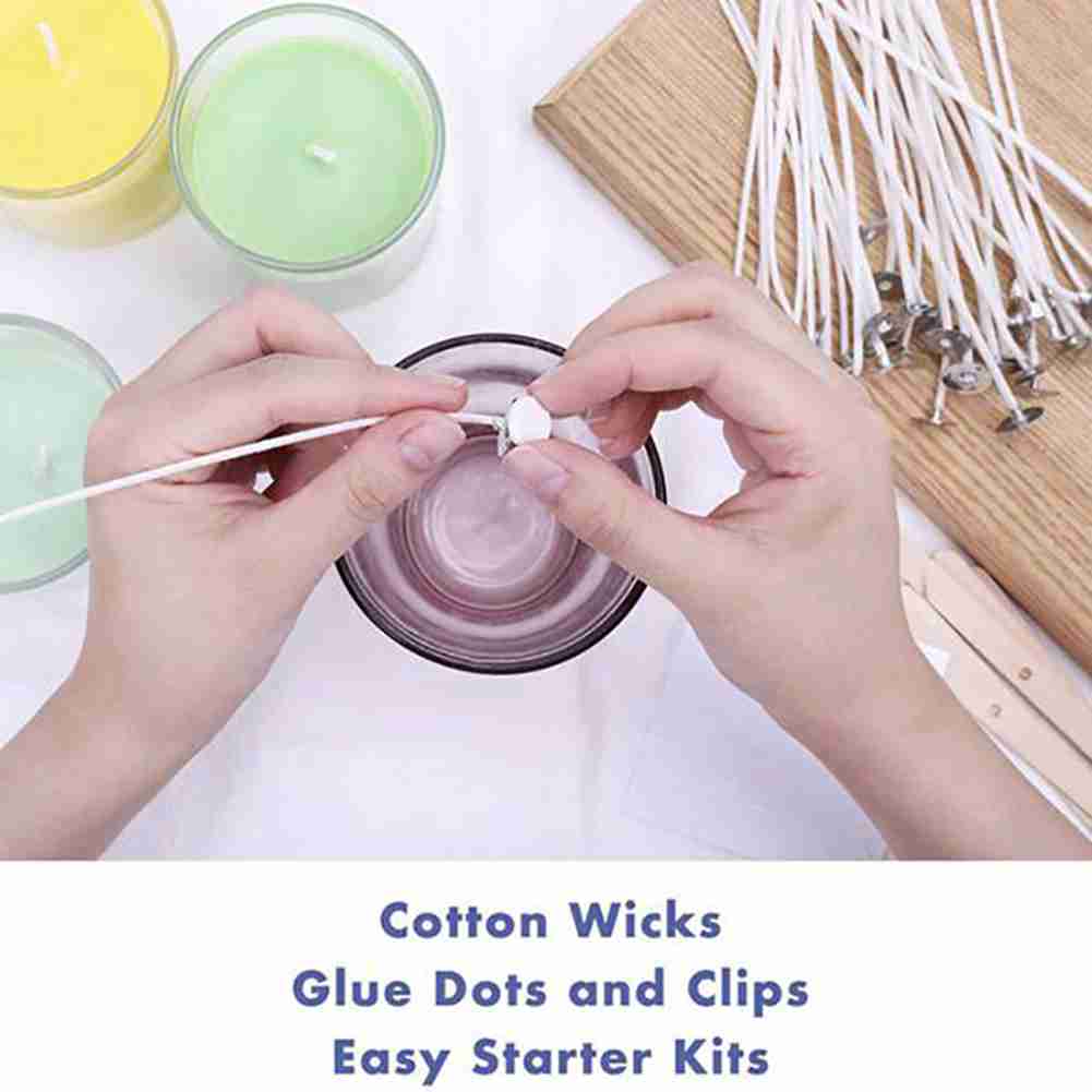 Candle wick and stickers: eco-friendly cotton. Size 8 cm, white round sticking points, double-sided foam and adhesive.