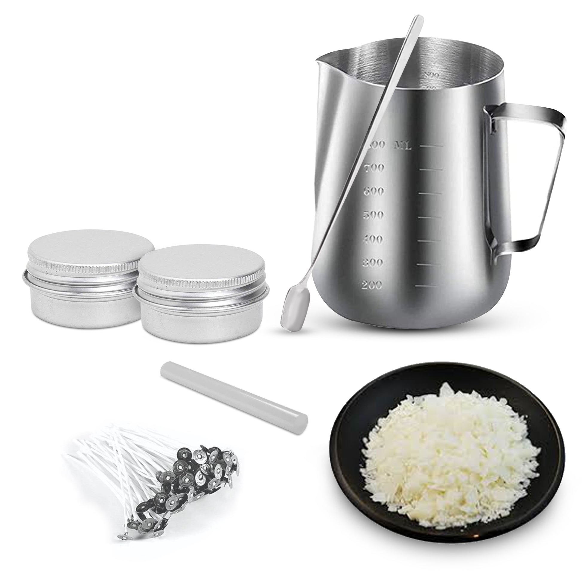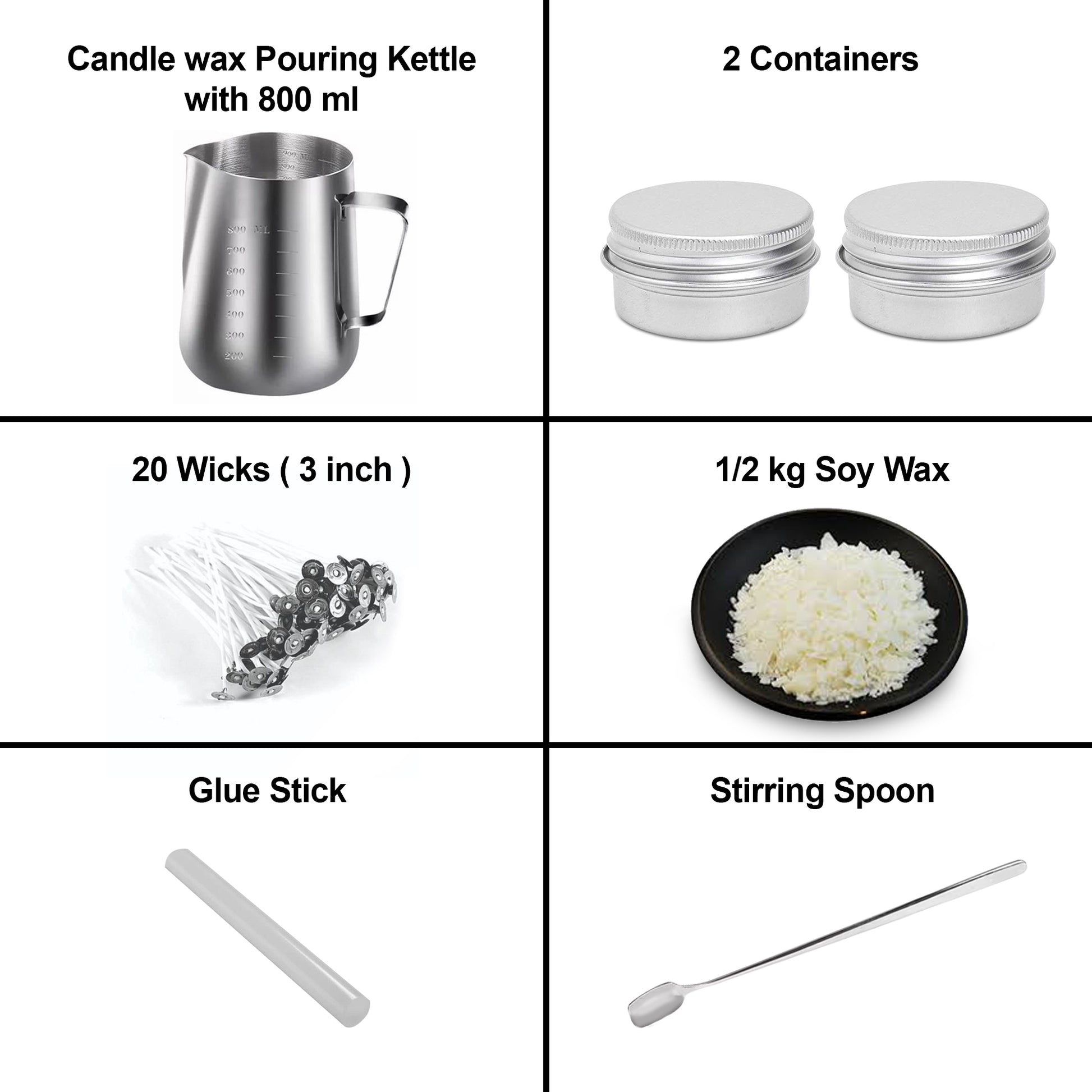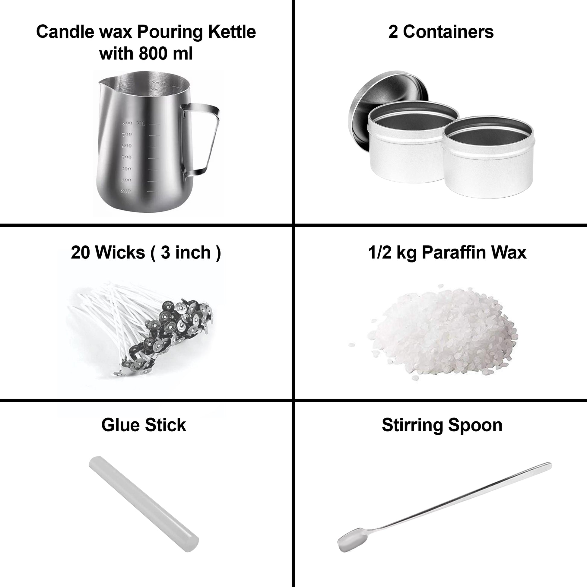 Candle Making Kit DIY with Candle Make Pouring Pot and Spoon, 20Pcs Candle Wicks and Glue Stick & 1/2 kg Paraffin Wax/ Soy Wax Chunks