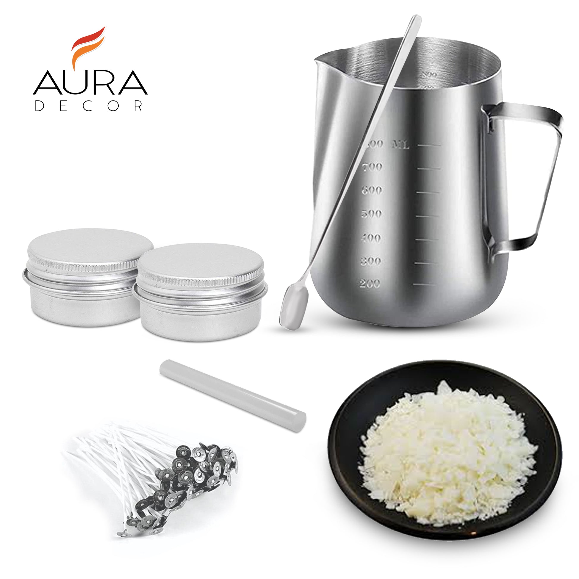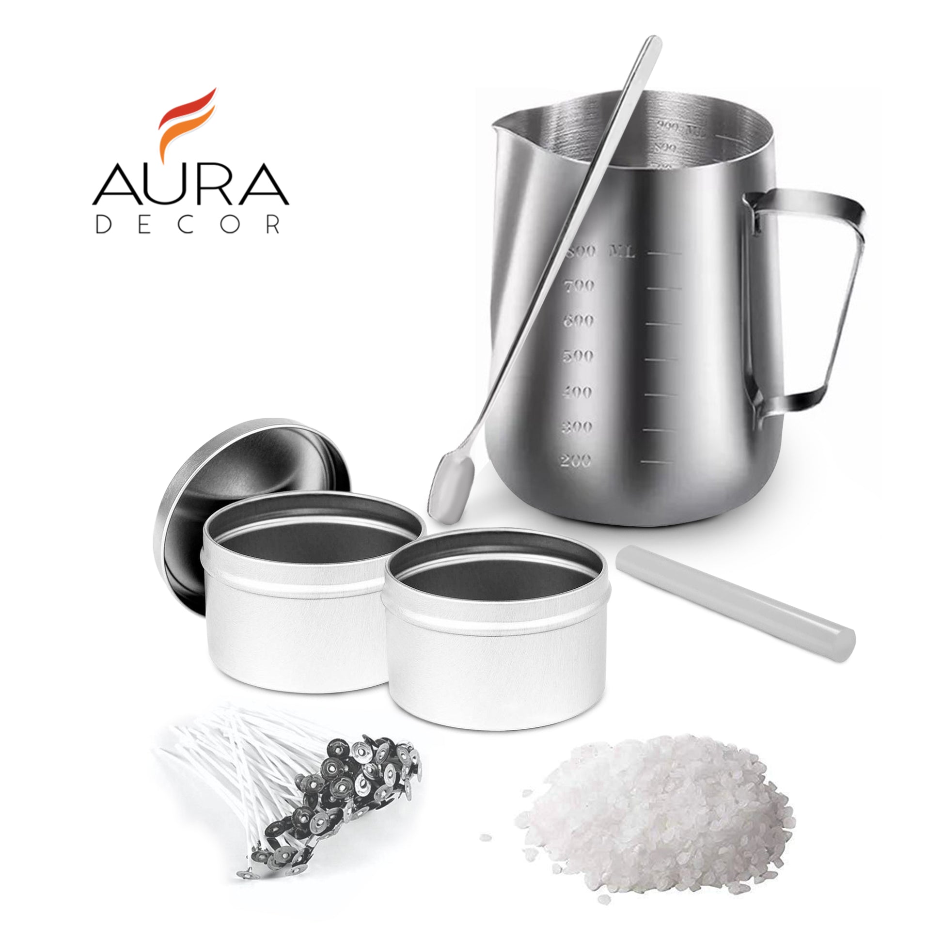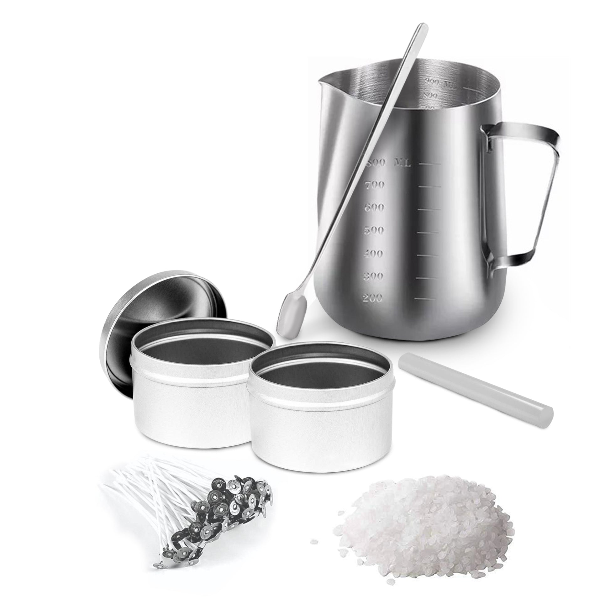 Candle Making Kit DIY with Candle Make Pouring Pot and Spoon, 20Pcs Candle Wicks and Glue Stick & 1/2 kg Paraffin Wax/ Soy Wax Chunks