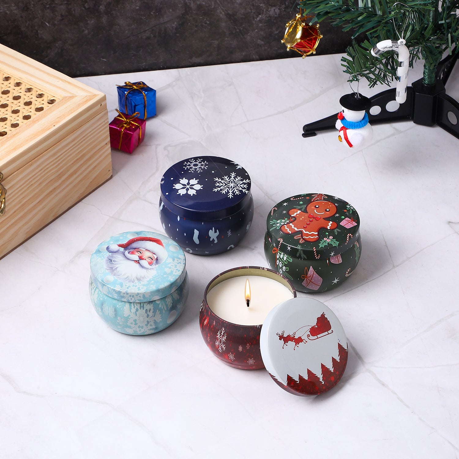 Celebrate the joy of the season with our Festive Charm Christmas Candle Set, a collection of four beautifully crafted tin candles that bring warmth and cheer to your home.