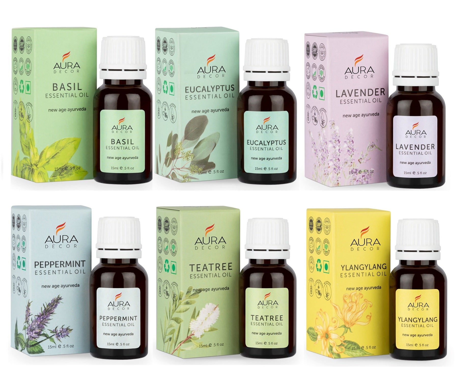Combo 3 : Tea Tree, Peppermint, Ylang Ylang, Basil, Eucalyptus, Lavender