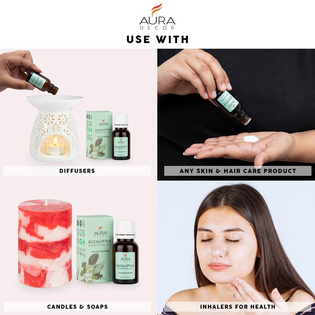 AuraDecor Eucalyptus Essential Oil is 100% pure essential oil extracted through steam distillation of Eucalyptus.