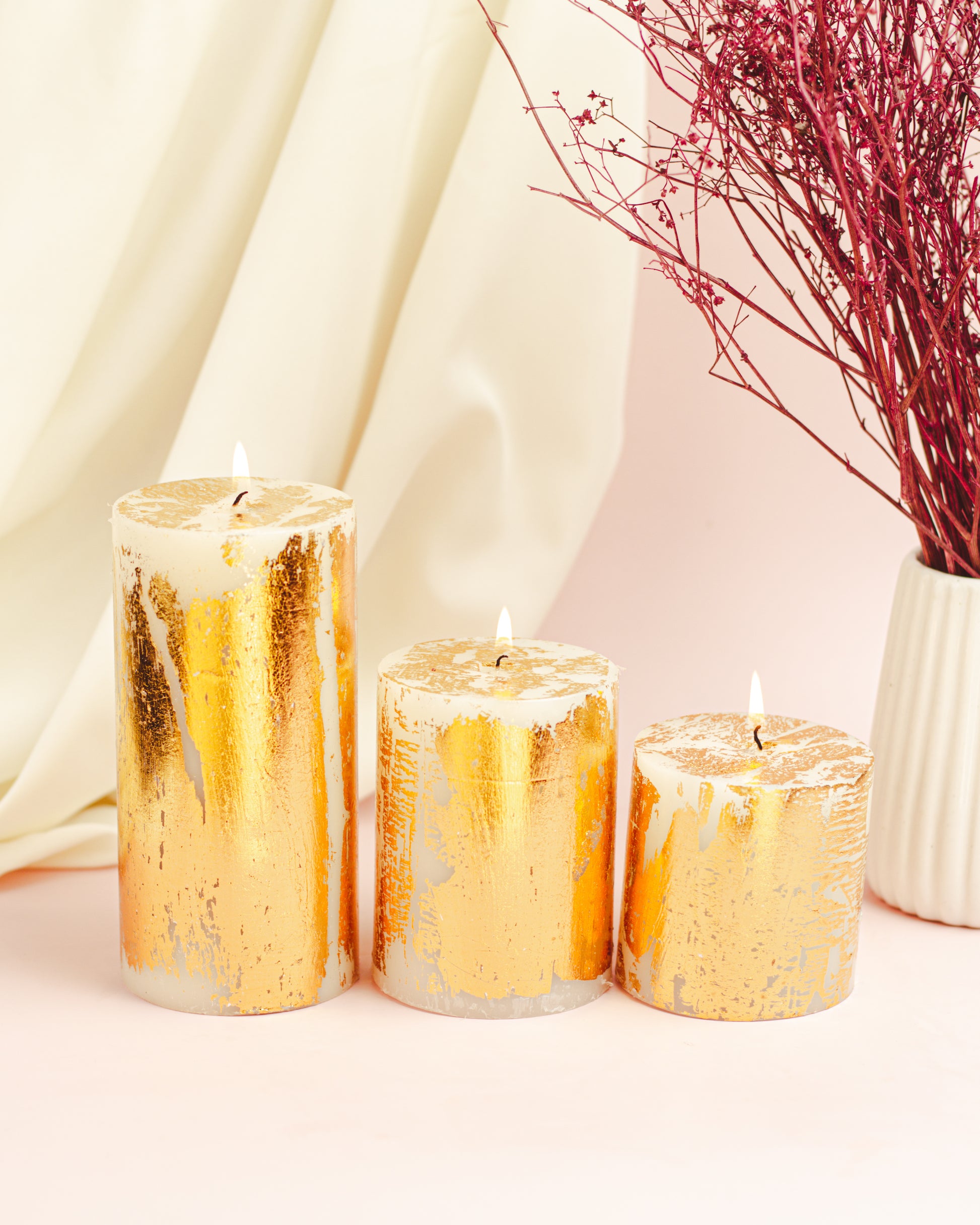 AuraDecor Set of 3 Gold Dust Pillar Candles ( 3, 4, 6 Inches )